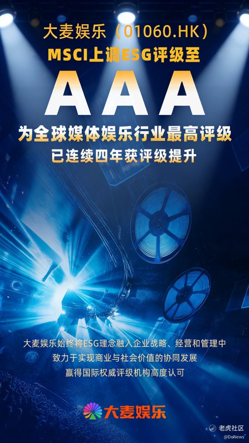 大麦娱乐MSCI ESG评级跃升至AAA级,为全球媒体娱乐行业最高评级