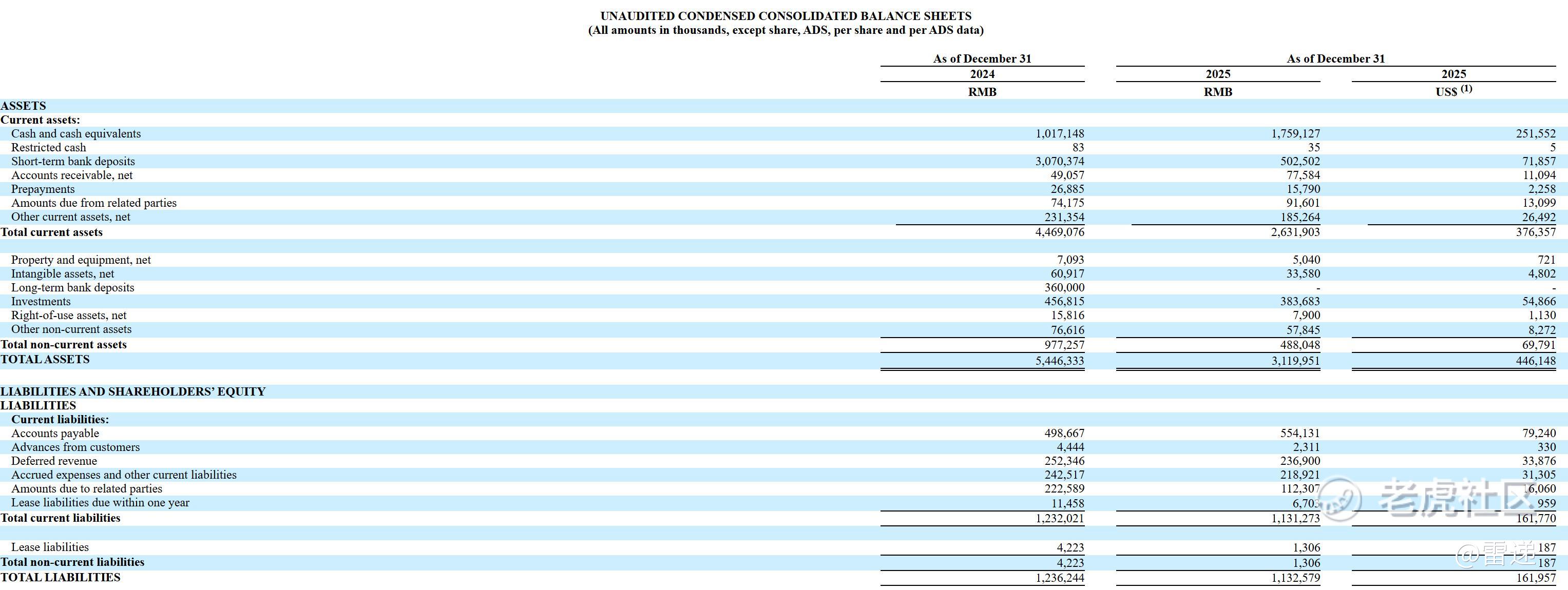 截至2025年12月31日,斗鱼持有的现金及现金等价物、受限制现金、其他非流动资产中的限制性现金以及短期和长期银行存款为228.37亿元(3.266亿美元),而截至2024年12月30日为446.78亿元,减少的主要原因是3亿美元的特别现金股息。