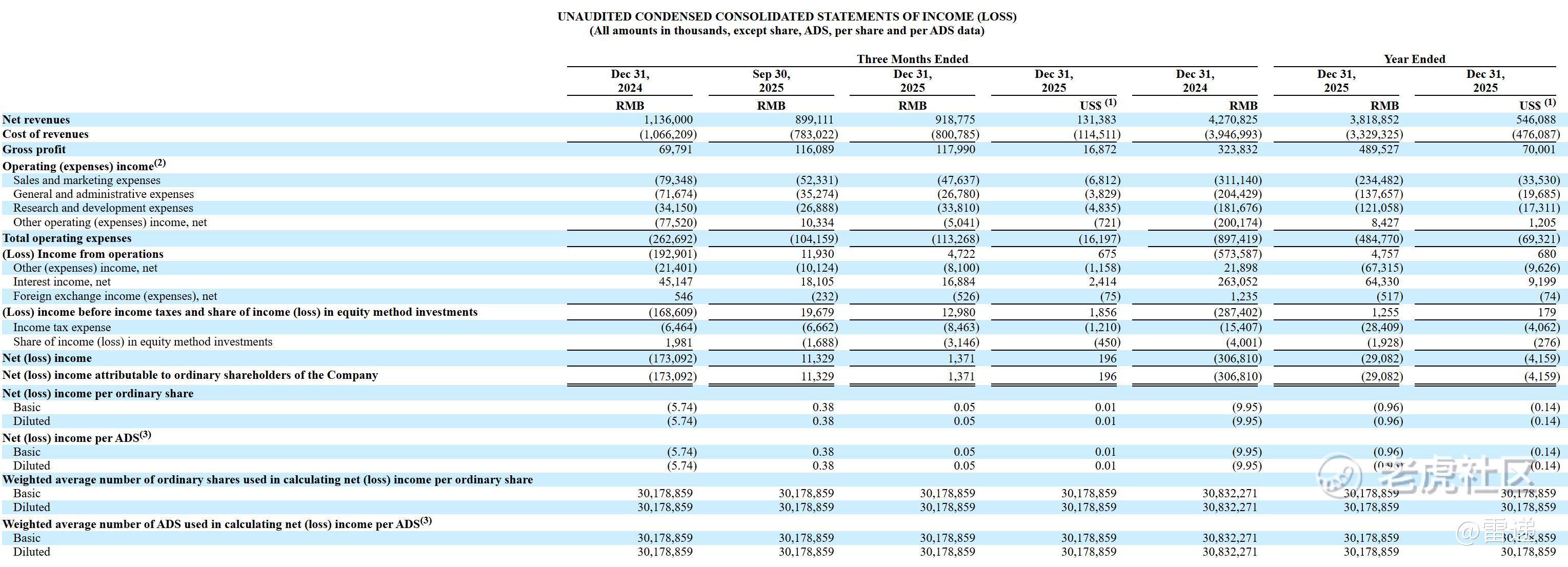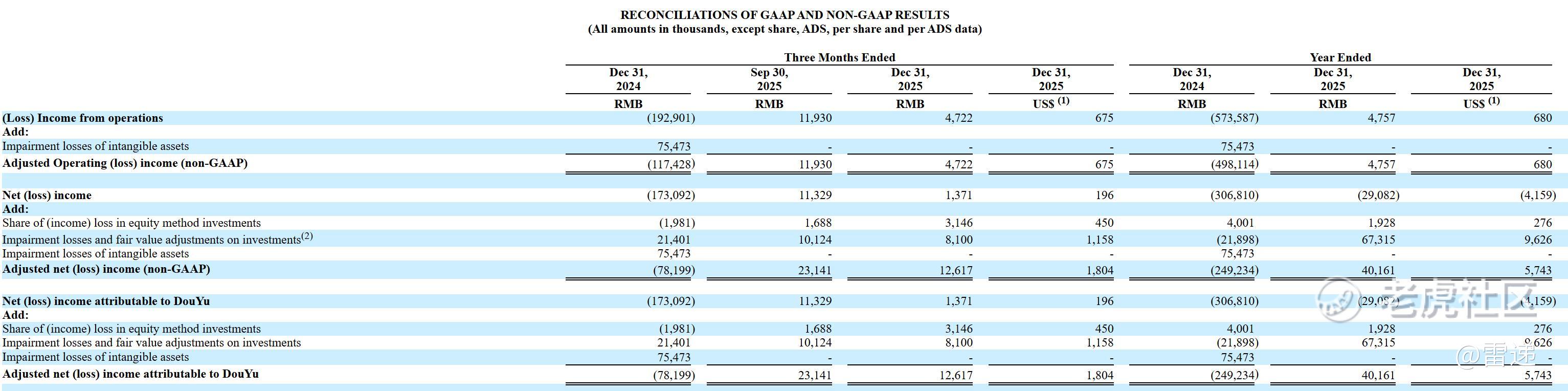 斗鱼2025年第四季度创新业务、广告和其他收入为4.058亿元(5800万美元),较上年同期的4.05亿元增长0.2%,主要归因于基于语音的社交网络服务的收入增加和游戏会员收入的季节性波动。