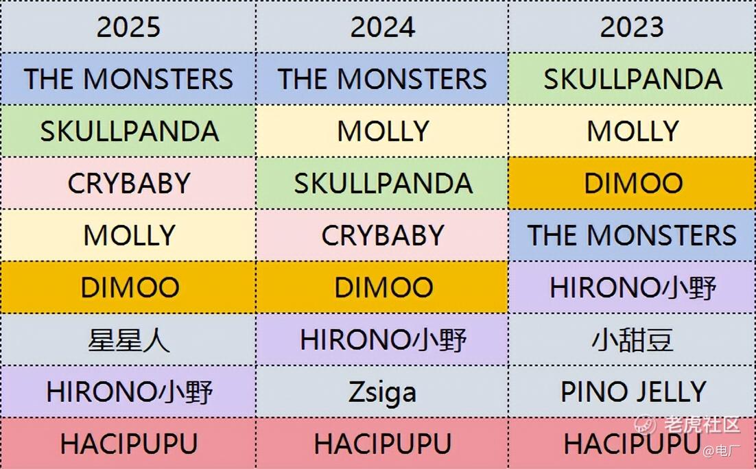 近三年泡泡玛特前8大IP变化 图源:电厂制图