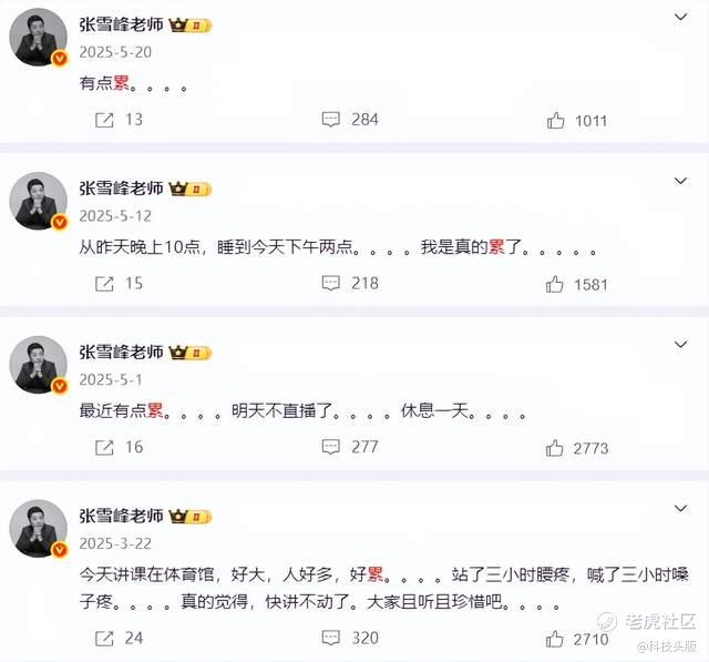 相比之下,张雪峰老师的“停不下来”,更多是被行业环境、职业属性以及身上的责任所裹挟——作为教育从业者,他承载着无数家庭的期待,常年高强度奔波、熬夜直播,即便被网友反复劝诫“注意身体”,也难以真正放慢脚步。