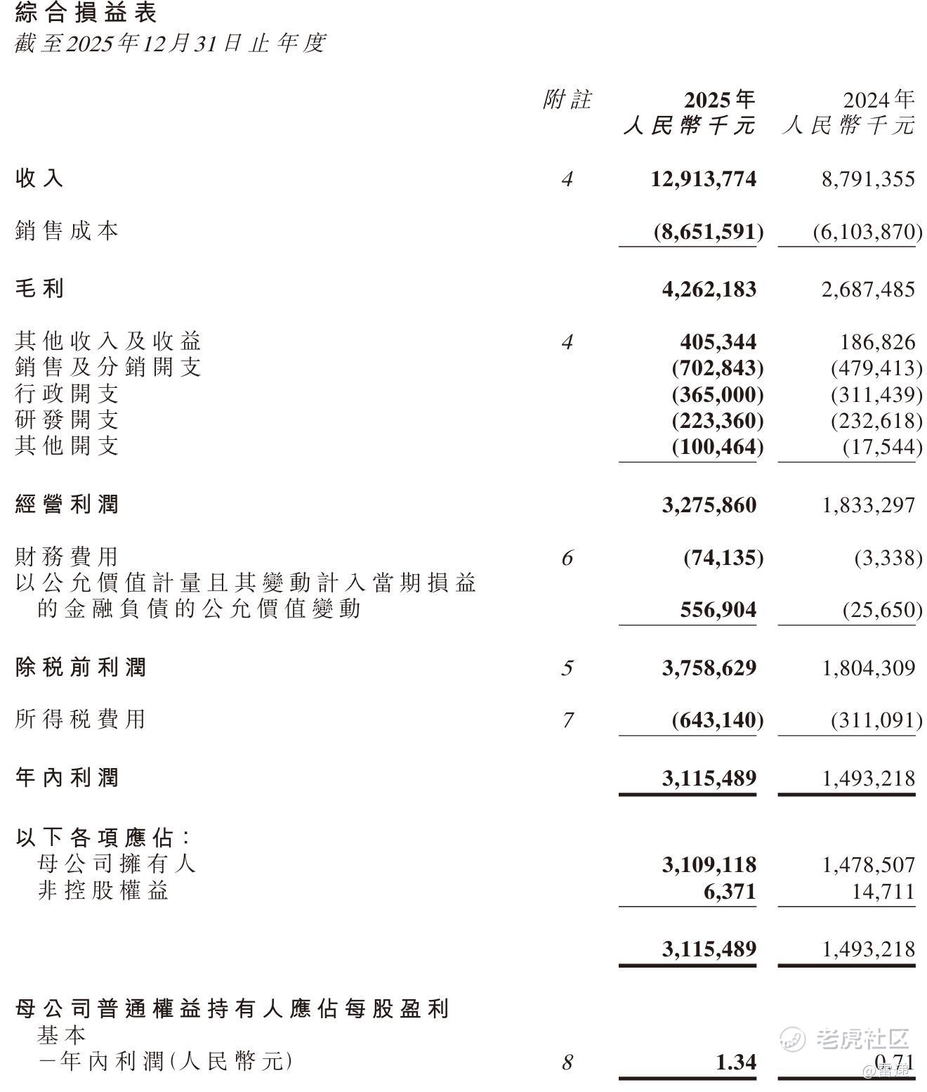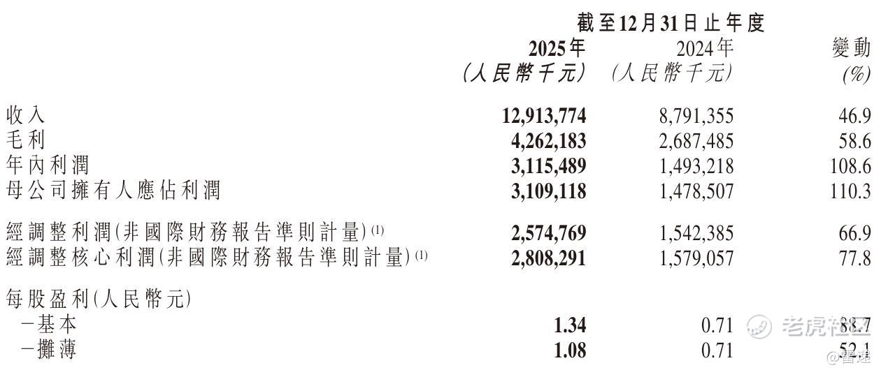 古茗控股2025年经调整净利为25.75亿元,较上年同期的15.42亿元增长66.9%;经调整净利为28亿元,较上年同期的15.79亿元增长77.8%。