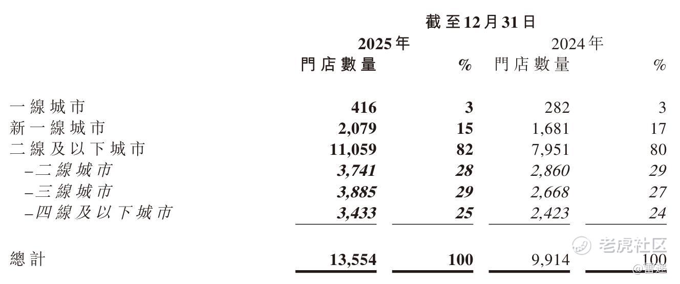 截至2025年12月31日,古茗控股的门店网络覆盖超过200个各线级城市,包括13,554家门店,较截至2024年12月31日的9,914家门店增长36.7%。