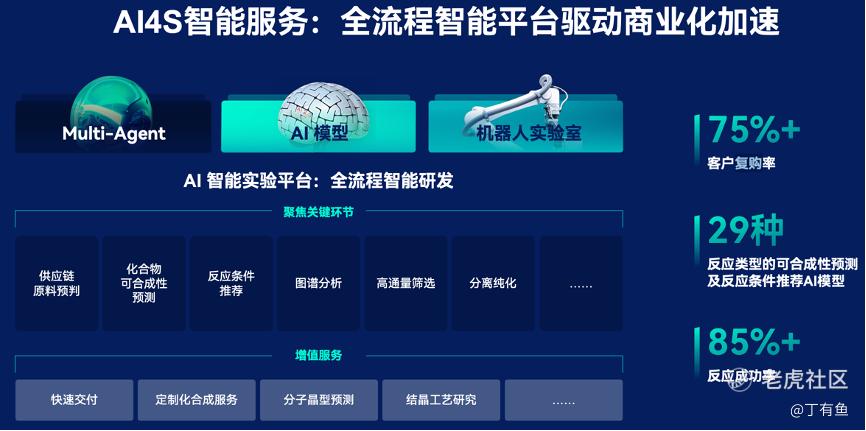AI4S智能服务这块业务更像基于AI+机器人+ Multi-Agent智能化研发一体化平台。这类业务被大客户验证以后,已经进入复购、数据增强、模型迭代、再复购的正循环。复购率75%以上,就是这个循环已经转起来的证据。