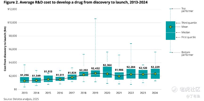 药物研发尤其如此。Deloitte在2025年发布的报告提到,全球大型药企2024年单个研发资产的平均成本已经达到22.3亿美元。