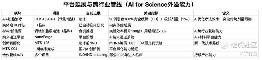这里需要特别提的一点就是,晶泰同时在拓展细胞治疗、材料、新能源等方向,AI平台能力也在快速外溢。