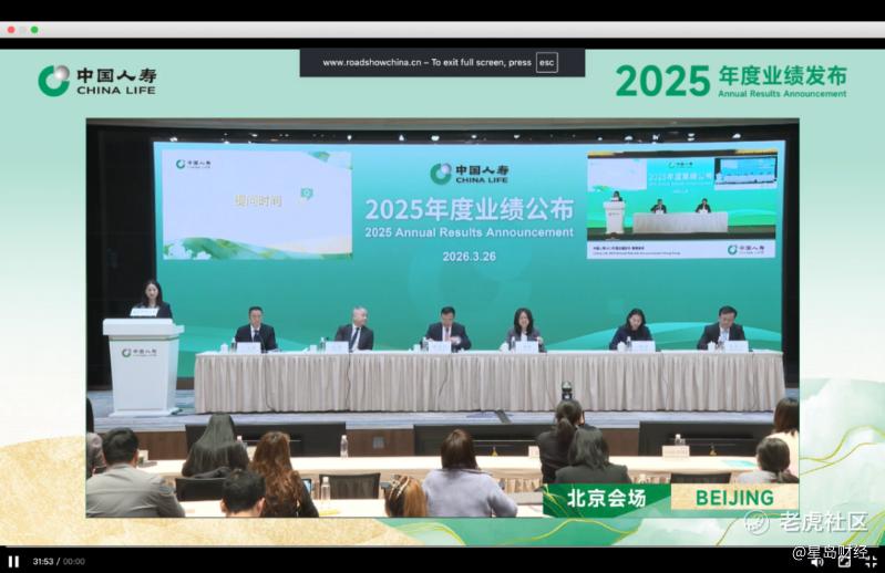 2026年3月26日上午10点45分,中国人寿(02628.HK/601628.SH)分别于北京和香港召开2025年度业绩发布会。出席人员有董事长蔡希良、总裁利明光、副总裁兼董事会秘书刘晖等管理层人员。