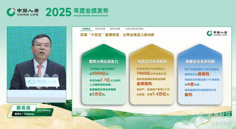 “2025年是多重压力交织叠加的一年,也是收获满满成效十足的一年,公司再次实现了规模、价值、速度、质量、结构、效益、安全的全方位‘满堂红’”,董事长蔡希良一句话拉开中国人寿2025年度业绩的帷幕。