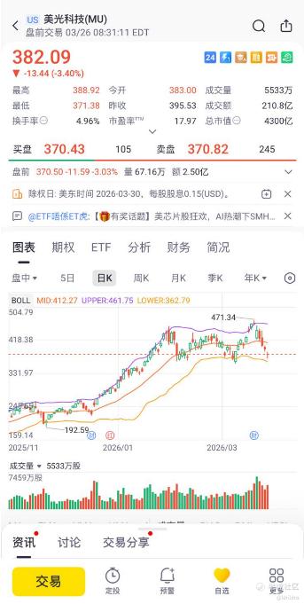 $美光科技(MU)$ 连续第五个交易日走低, $西部数据(WDC)$ 和 $闪迪(SNDK)$ 也相继暴跌不少。这一跌势发生在整体科技股表现强劲的背景下,要知道当日标普500指数上涨了0.4%,纳斯达克综合指数也上涨0.8%,也就是特别凸显记忆体板块的异常弱势。
