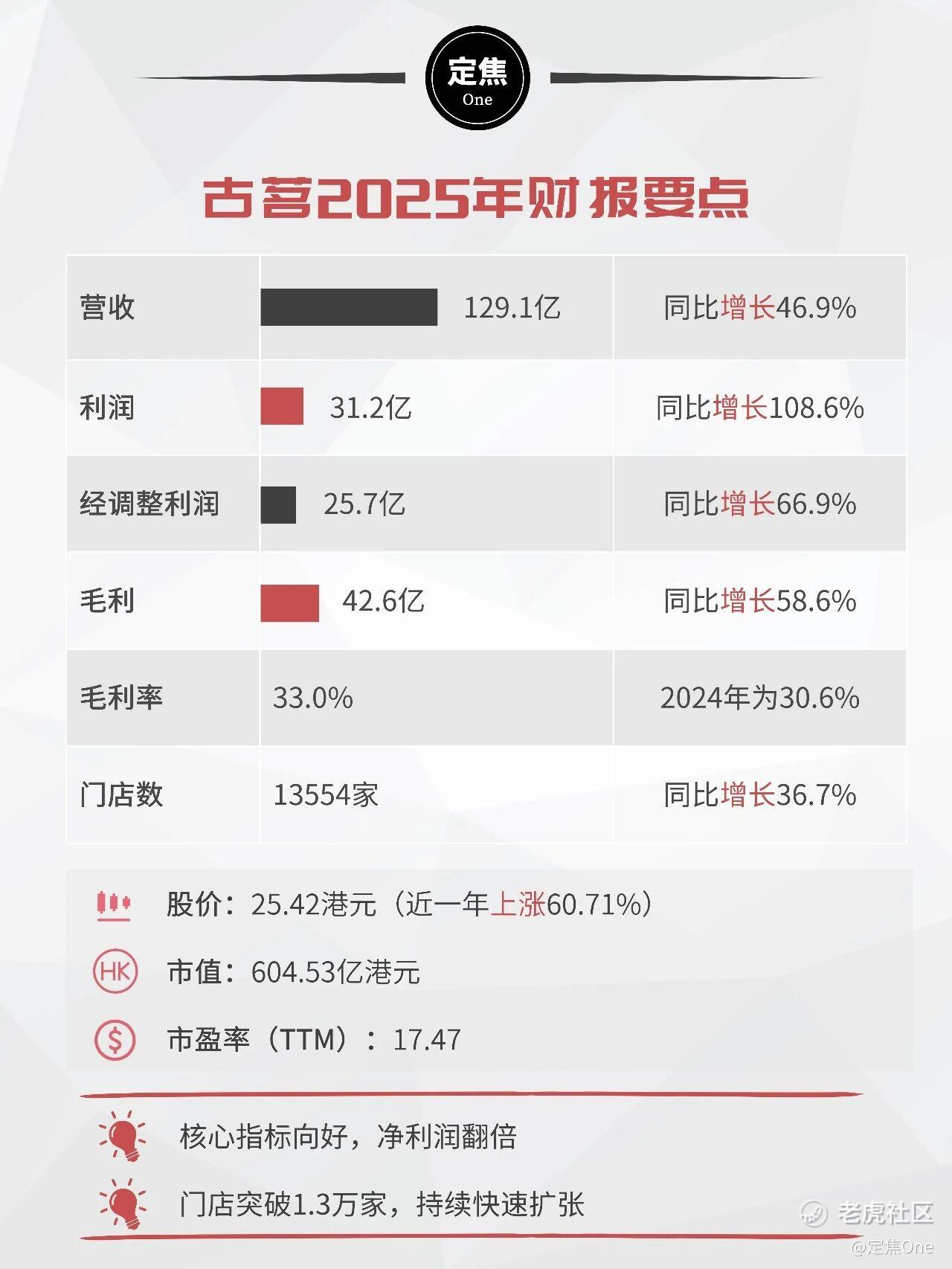从行业格局来看,以加盟模式为主的几家头部品牌中,蜜雪冰城凭借规模和成本控制,在营收上遥遥领先,古茗在保持高速扩张的同时,盈利效率表现突出,其毛利率在同类品牌中处于相对较高水平。