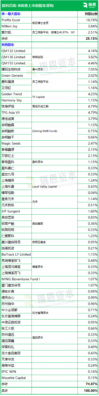 招股书显示,爱科百发在香港上市前的股东架构中,