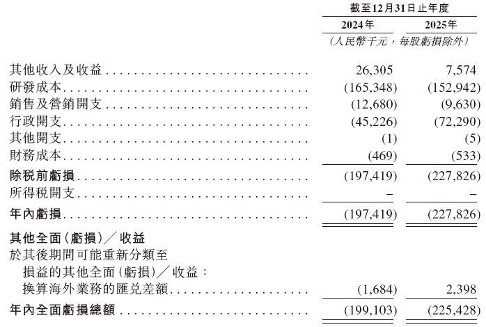 招股书显示,在过去的2024年和2025年,爱科百发未有营业收入,相应的研发成本分别为人民币1.65亿和1.53亿元,相应的净亏损分别为人民币1.99亿和2.25亿元。