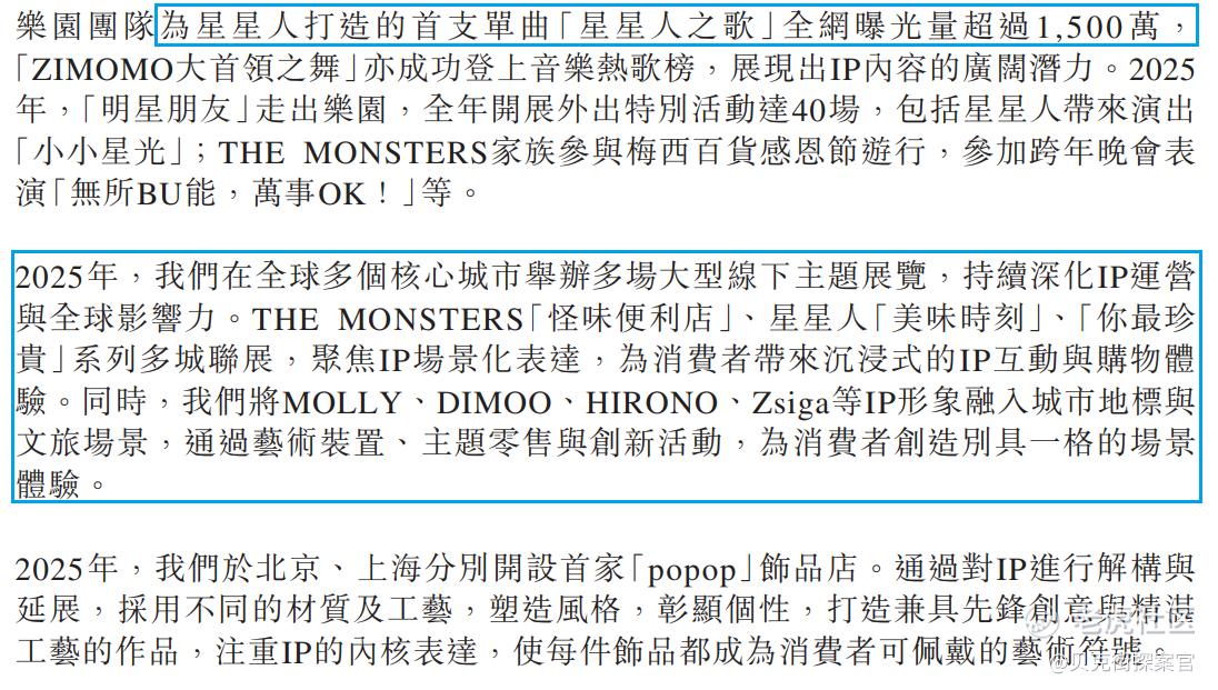 星星人的出现,只能证明泡泡玛特确实在尝试证明“公司可以制造爆款”,但现实却骨感到让人担忧:一个IP公司,必须通过更高频、更重投入的营销动作,才能勉强把一个IP推到可观规模。