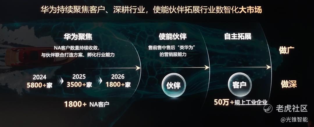 按照**中国政企业务对市场的分级,NA市场属于Huawei-Led市场,聚焦1800家核心客户,打造40个标杆,联合攻关核心生产场景,树立行业灯塔案例。