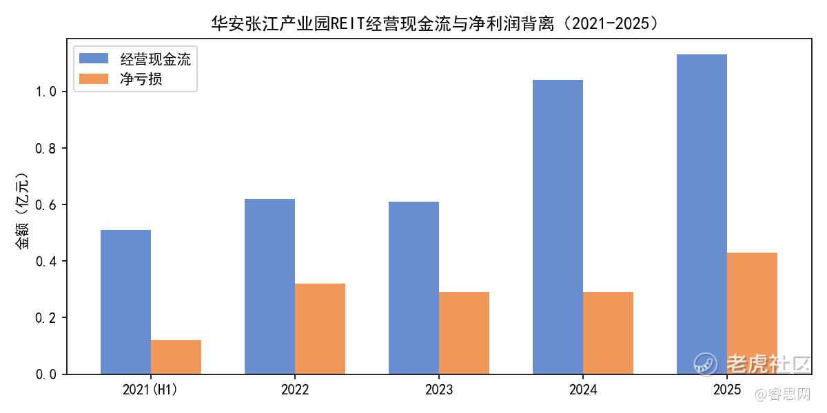 经营现金流与净利润持续背离。2025年经营活动产生的现金流量净额为1.13亿元,与4279万元的净亏损形成鲜明对比。事实上,自上市以来,该基金的经营活动现金流始终为正:2021年5081万元、2022年6220万元、2023年6077万元、2024年1.04亿元、2025年1.13亿元。现金流为正却持续亏损,这种"账面亏、现金流盈"的现象,暴露出REIT在会计处理层面的结构性问题。造成这一背离的主要原因是非现金支出——尤其是固定资产折旧和无形资产摊销。以2025年为例,净利润为-4279万元,而经营现金流为1.13亿元,差额约为1.56亿元,这个差额主要就是折旧摊销等非现金支出。这意味着,该基金的实际经营性收益(现金流)远好于账面显示的亏损,问题的关键在于会计折旧政策过于保守,或者资产估值存在虚高成分。