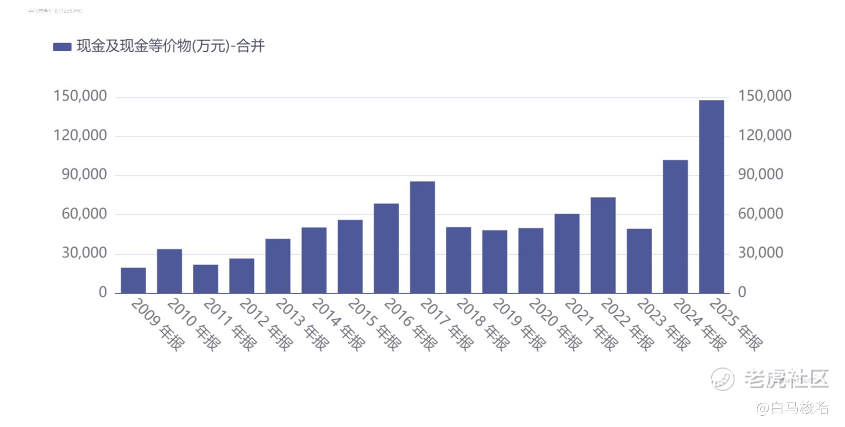 当期经营业绩向好的背景下,2025年底中国有色矿业总资产、净资产达到历史最高水平,现金储备(现金及现金等价物)同比大增44.92%,以年度视角看,当下是中国有色矿业账上现金最充沛的时期。