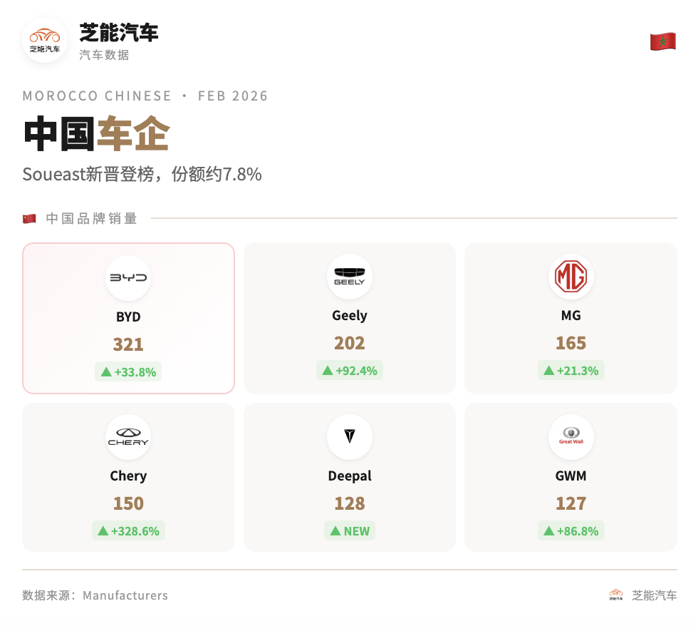 非洲车市 | 摩洛哥2026年2月:中国品牌销量破千