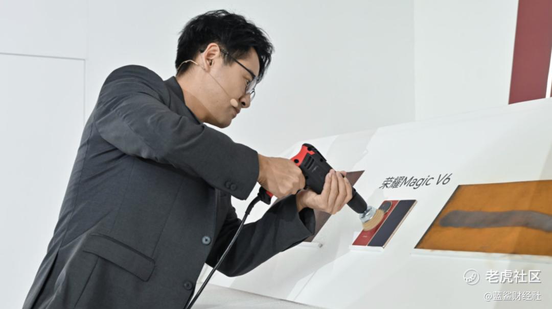 今年MWC和荣耀Magic V6国内发布会上,无论是具身机器人现场演示后空翻、太空步等高难度动作,机器人手机Robot Phone具身交互神化,眼神追随、点头互动、音乐律动......用“生命感”替代冰冷参数,到电钻磨屏、引体向上承重、冰冻防水、高空滑索等可视化挑战,荣耀开始以一种非常直观接地气的方式,将技术的领先型和实际使用场景结合展示。