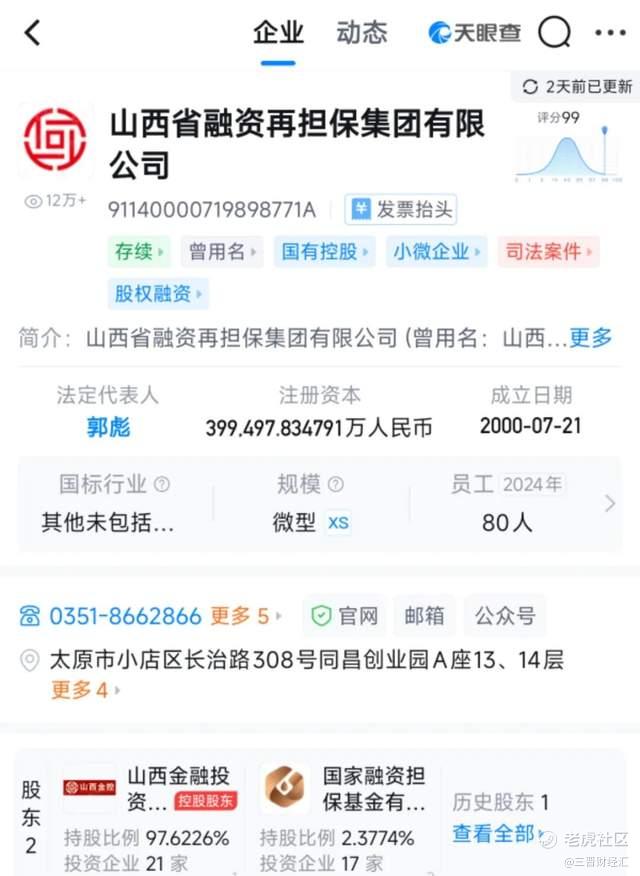 股权结构方面,该公司由山西金控持股97.62%、国家融资担保基金有限公司持股2.38%,实际控制人为山西省财政厅。