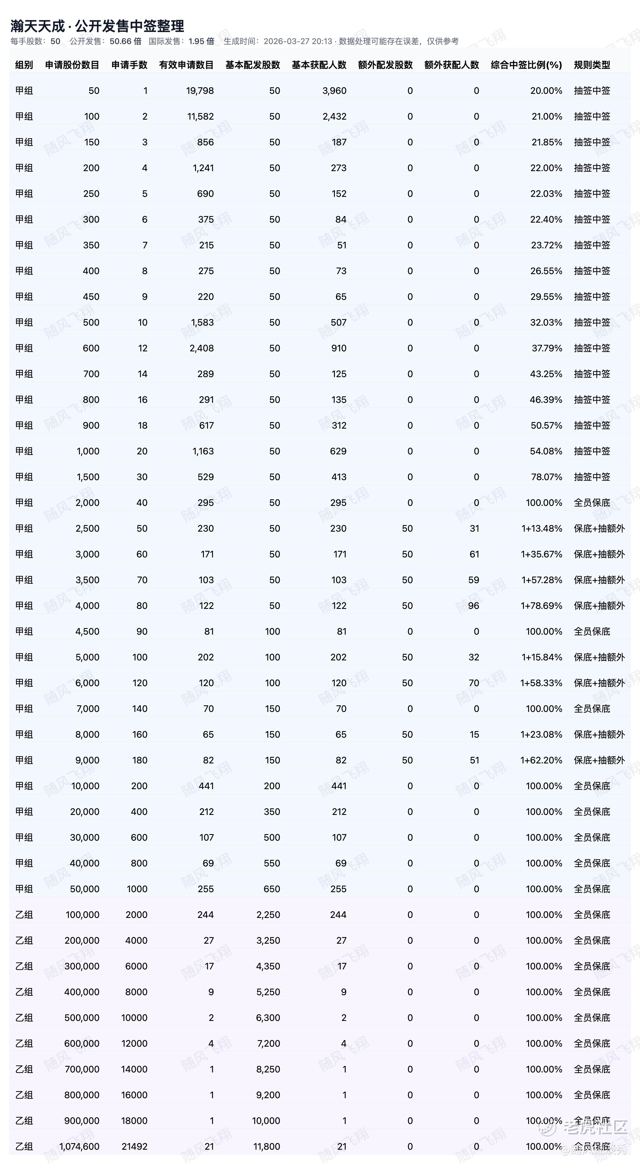各档位中签率公布!
