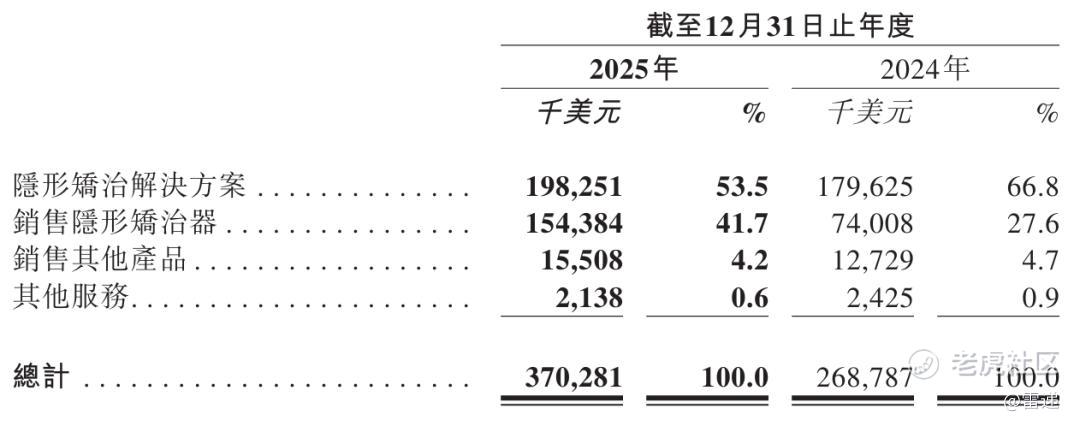 时代天使2025年销售隐形矫治器收入1.54亿美元,占营收比例为41.7%;上年同期为7401万美元;销售其他产品收入1551万美元,占营收比例4.2%。
