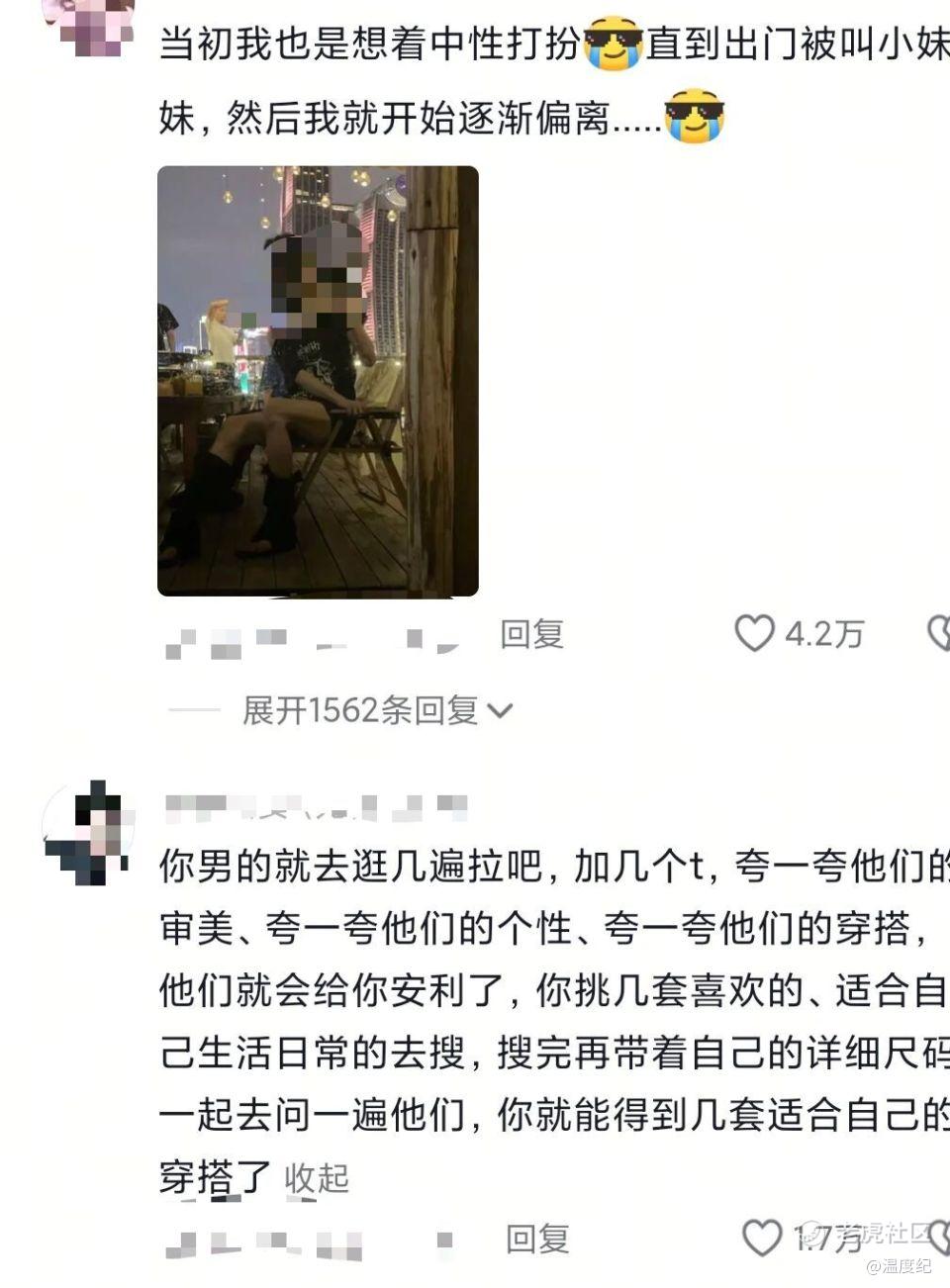 抖音上“无性别穿搭”的搜索人群,男性占比58%,大部分都是18-23岁的00后。社交平台上,男性消费者很少像女性那样分享自己“男装女穿”的经验,但个性化穿搭视频有关的评论区里,建议搜索男女同款,或改买女装的提议其实并不罕见。