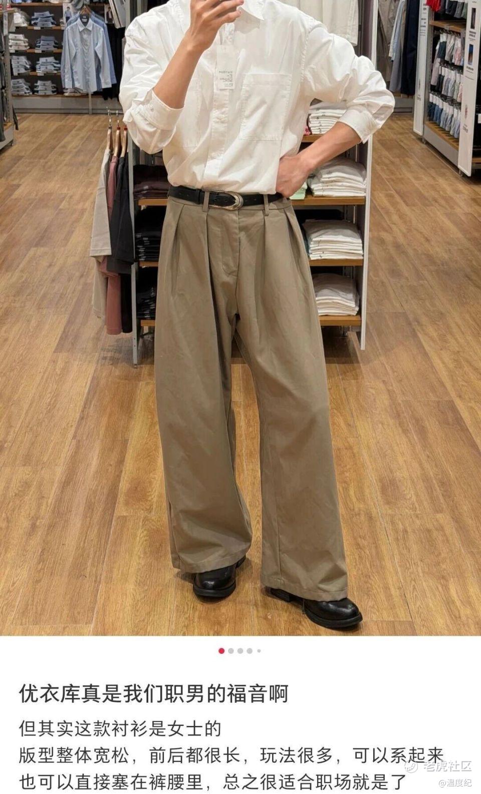 直到某个下午,他在优衣库女装区拎起了一条高腰直筒裤。原本只是看版型差不多,想要试试看,没想到效果却出奇惊艳。和普遍采用中低腰设计的男裤不同,女裤的高腰剪裁巧妙提升了腰线,再配合后腰处位置更高的口袋设计,最大化地修饰了身材比例。原本80cm的腿长,看上去足有一米二。