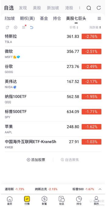 英伟达、亚马逊:跌幅约3%。