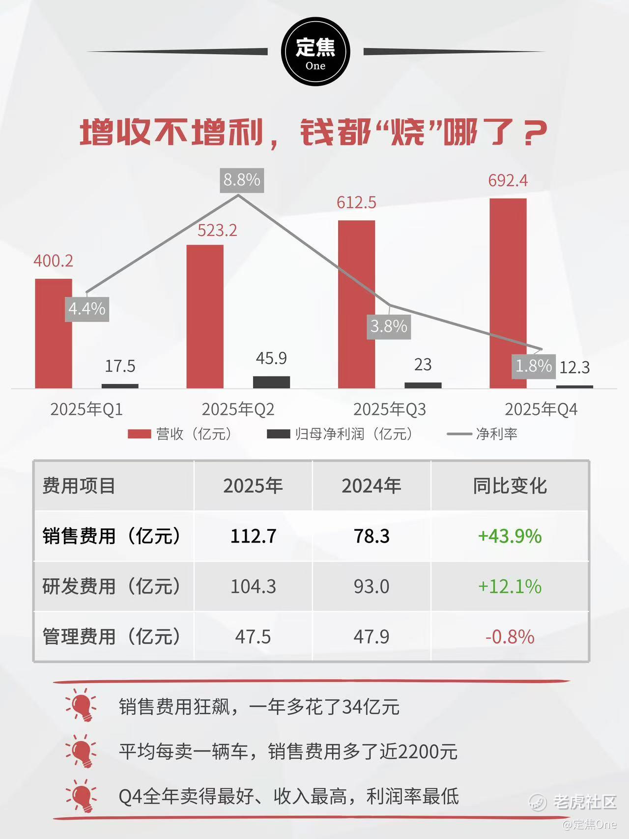 这是典型的“增收不增利”,钱都去哪了?销售费用一年暴增34亿元,是利润下滑的最直接原因。