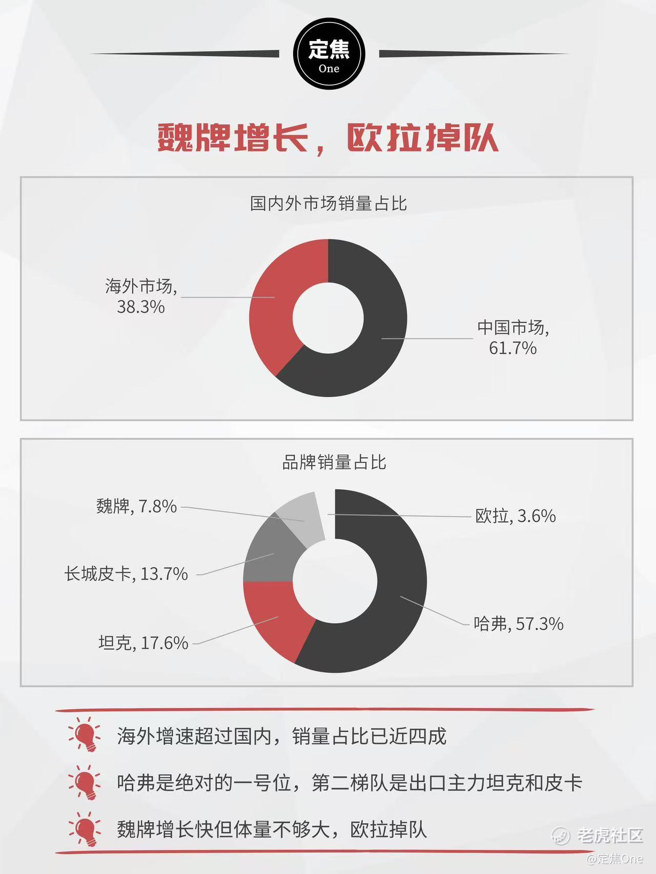 从各品牌来看,哈弗是绝对的一号位,一个品牌撑起57.5%的销量;坦克和长城皮卡是出口主力;重金投入的魏牌终于有所起色,但欧拉品牌正处于战略转型的阵痛期,新平台产品欧拉5在12月才上市,2026年才是真正的考验。