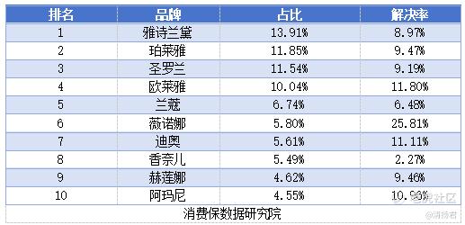 在12315投诉信息公示平台上,去年3月15日至今年3月15日期间,化妆品投诉有25万多件。其中38.7%是质量问题,18.8%是售后问题,而近三年雅诗兰黛的投诉量,在国际美妆品牌里名列前茅。