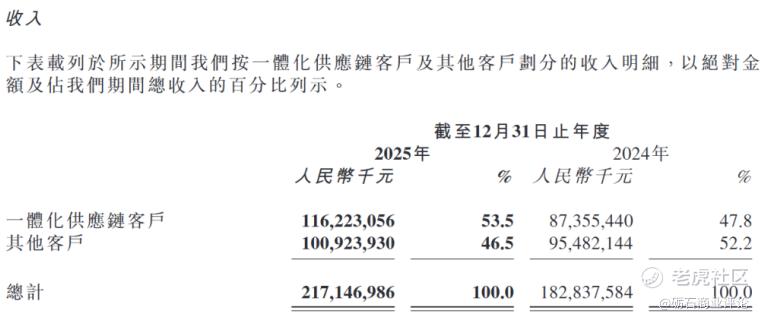 按照内部划分,京东物流将其客户划分为一体化供应链客户和其他客户两种类型。其中,一体化供应链客户是指使用京东物流的仓储或存货管理服务(即仓配一体化服务)的客户。财报数据显示,2025年全年,京东物流一体化供应链物流服务收入达到1162亿元,同比增长33%,这也是公司一体化供应链收入首次突破1000亿元。