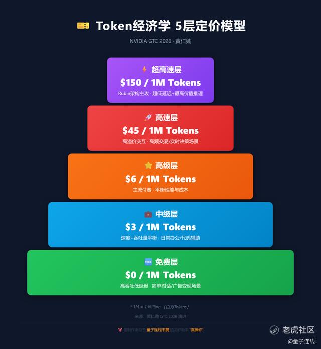 黄仁勋在演讲中给出了他认为未来会出现的五档Token价格: