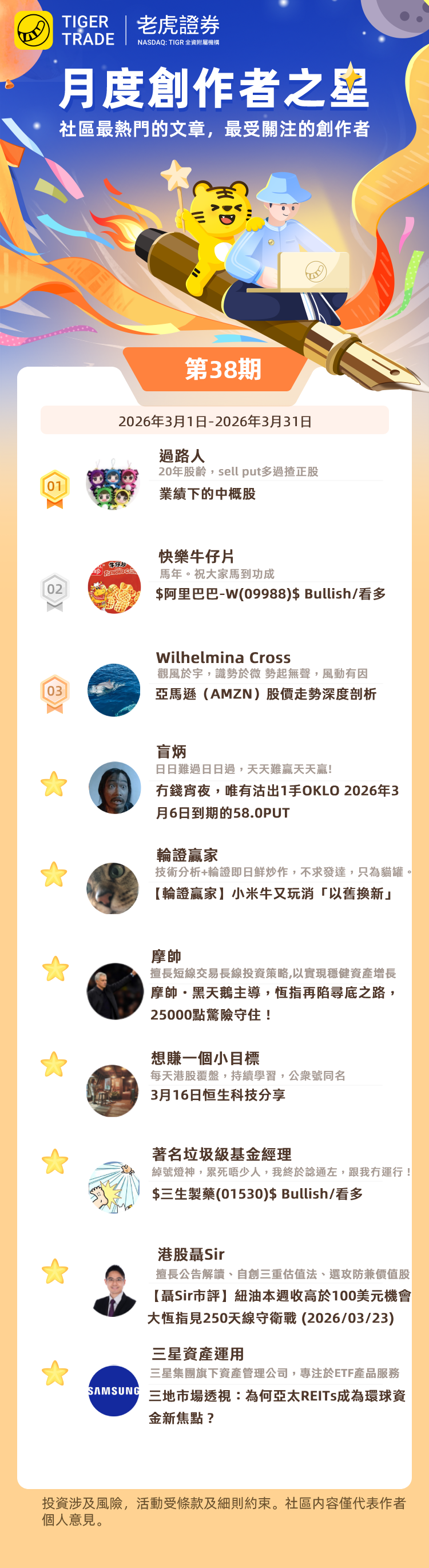 喺老虎证券香港社区,我哋每月评选一次老虎月度创作者之星![Love you]