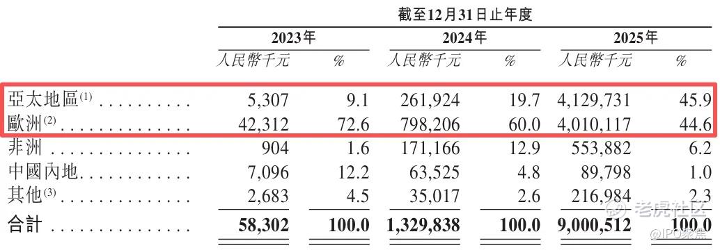 按地理位置划分,公司为典型的出口导向型企业,其大部分收入来自亚太(不含中国内地)及欧洲,于2025年分别占当期收入的45.9%及44.6%。公司整体的境外收入占比达到99.0%。