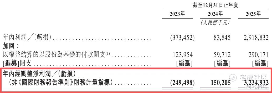 在剔除不会引起现金变动的项目后,从2023年至2025年,公司的经调整净利润分别为-2.5亿元、1.5亿元及32.3亿元。