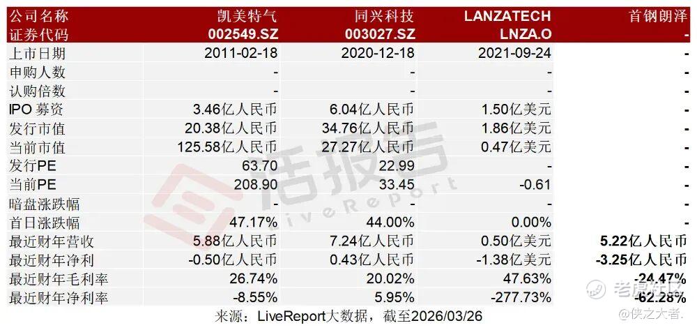 凯美特气(002549.SZ)、同兴科技(003027.SZ)、LANZATECH GLOBAL(LNZA.O)