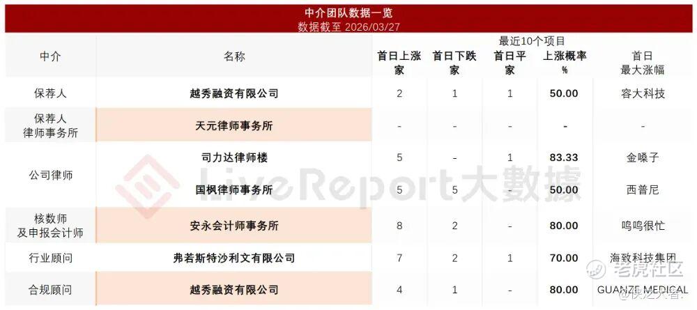 据**大数据统计,首钢朗泽中介团队共计7家,其中保荐人1家,近10家保荐项目数据表现不足;公司律师共计2家,综合项目数据表现普通。整体而言中介团队历史数据表现中规中矩。