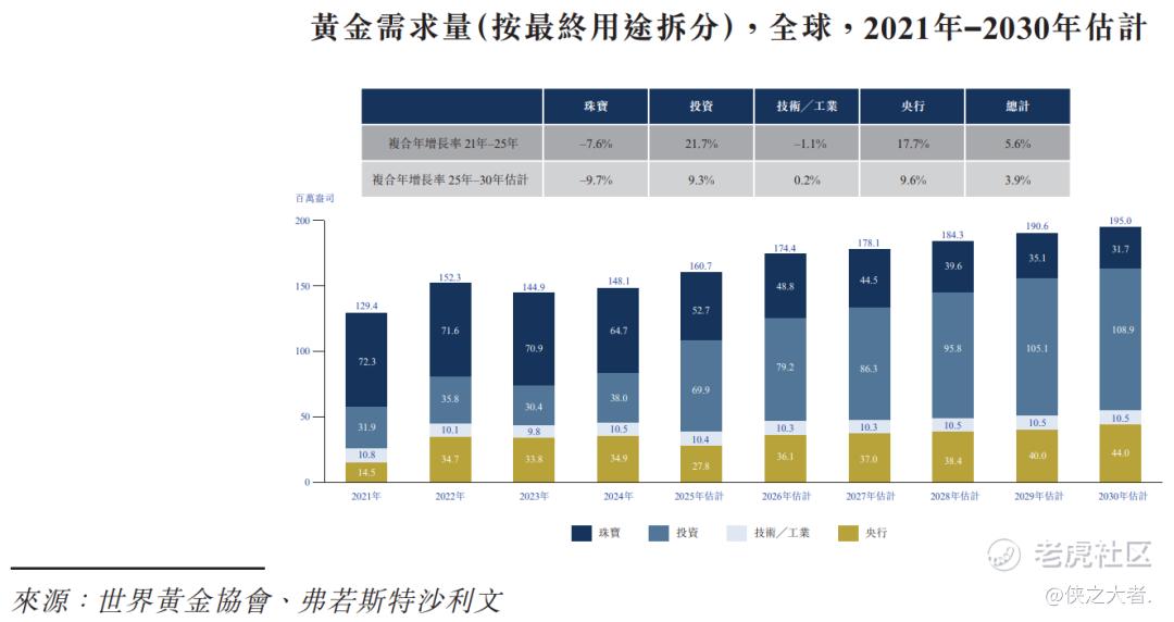 根据弗若斯特沙利文(Frost & Sullivan)的报告,全球黄金需求从2021年到2025年经历了波动,2022年后小幅下降,整体以5.6%的复合年增长率增长,而2024年以来需求呈现加速增长态势,预计到2030年全球黄金需求将达到195.0百万盎司。从2025年到2030年,全球黄金需求预计将以3.9%的复合年增长率稳步增长。