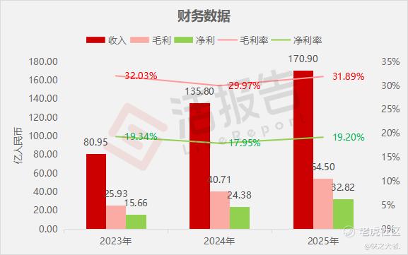 收入分别约为人民币80.95亿、135.80亿、170.90亿,2025年同比+25.84%;