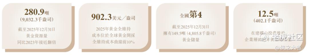 截至2025年,公司黄金储备总量达4.8百万盎司,在中国位列第四。