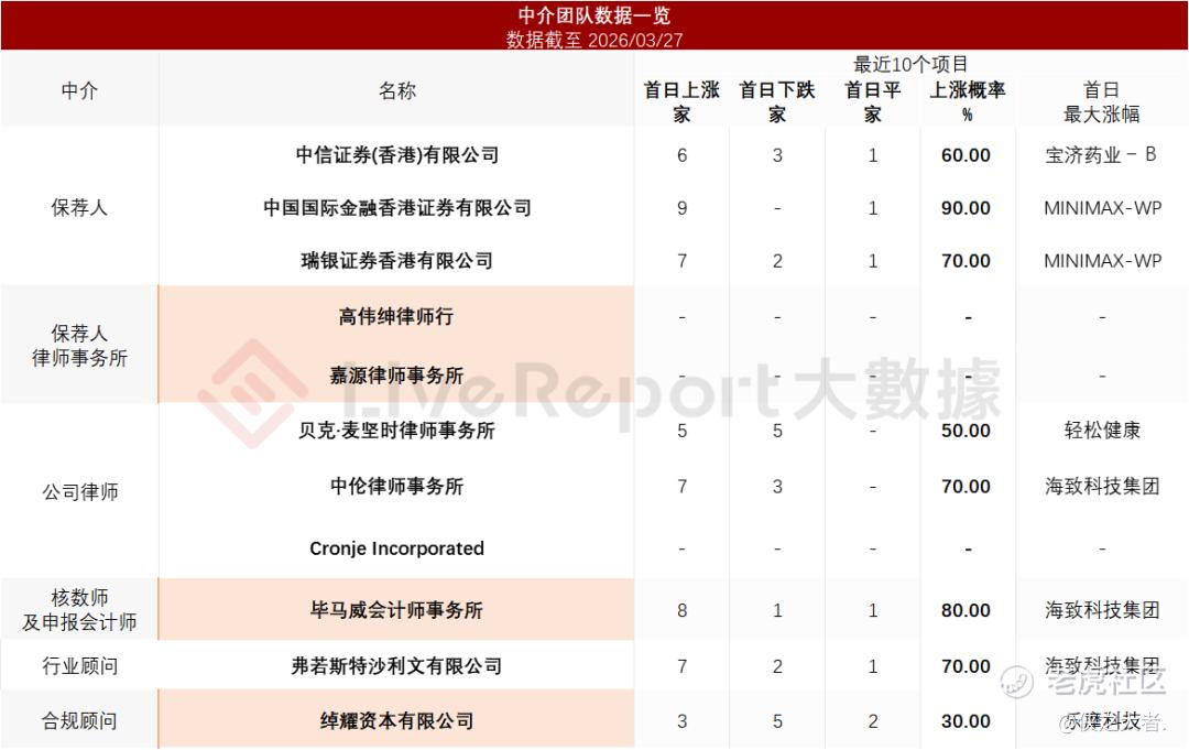 据**大数据统计,山金国际中介团队共计11家,其中保荐人3家,近10家保荐项目数据表现尚可;公司律师共计3家,综合项目数据表现平平。整体而言中介团队历史数据表现普通。