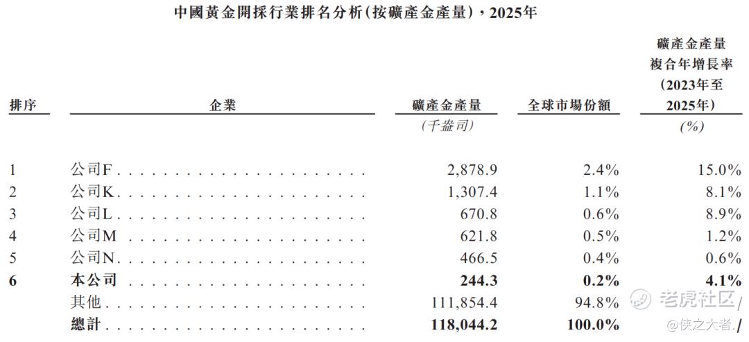 2025年,公司的黄金矿总产量在该等领先公司之间排名第六,总矿产金产量达244.3千盎司。
