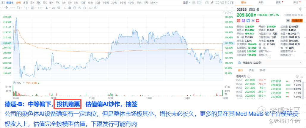 虽然我已明确把它归类赌票,但这家涨幅是真的妖!估值纯按AI医疗模型的卖,主要是发行价99在95.6~112.5里偏下限发行88亿HK,属于线下发行,但这幅度确实无法估量!