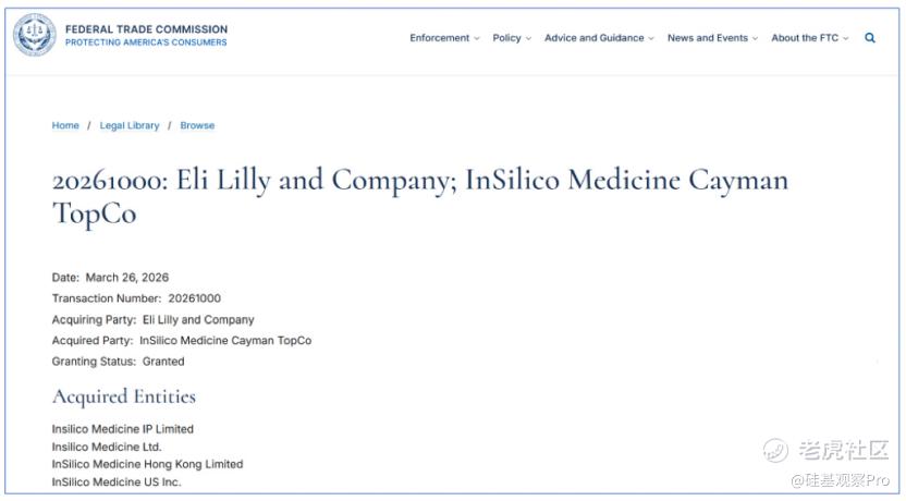 但能在监管雷达上留下痕迹的超级合作,通常是“大象”之间的游戏。英矽智能,作为新兴AI制药公司能在与巨头的合作交易中触发HSR,本就意味着这笔交易在财务规模和竞争格局上已经进入了“顶级联赛”。
