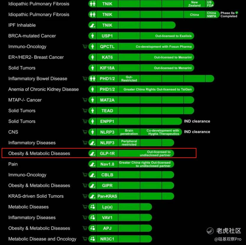 在英矽智能官网公开的管线图中,只有一项处于PCC阶段针对GLP-1R的资产被标记为“授权给未披露合作伙伴”;更具指向性的是,在2025年Bio-Europe期间,英矽智能发布了一系列心血管代谢管线组合,随后不久即宣布部分相关管线停止对外开放。这种有节奏的“收缩”,往往是超级大单落地前典型的排他性清场动作。
