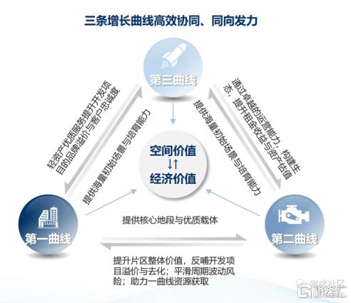 三条曲线之间相互赋能:经营性不动产与轻资产业务为片区提供核心地段与优质载体,提升片区整体价值,反哺开发项目溢价与去化,平滑周期波动风险,助力资源获取;而开发业务则为后两条曲线提供稳定的资金支持与优质的底层资产。