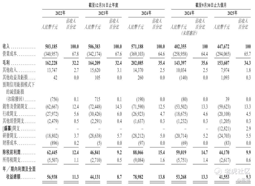 铜师傅2025年前9个月营收为4.48亿元,较上年同期的4亿元增长12%;毛利为1.54亿元,毛利率为34.3%;期内利润为4155万元,较上年同期的5327万元下降22%。