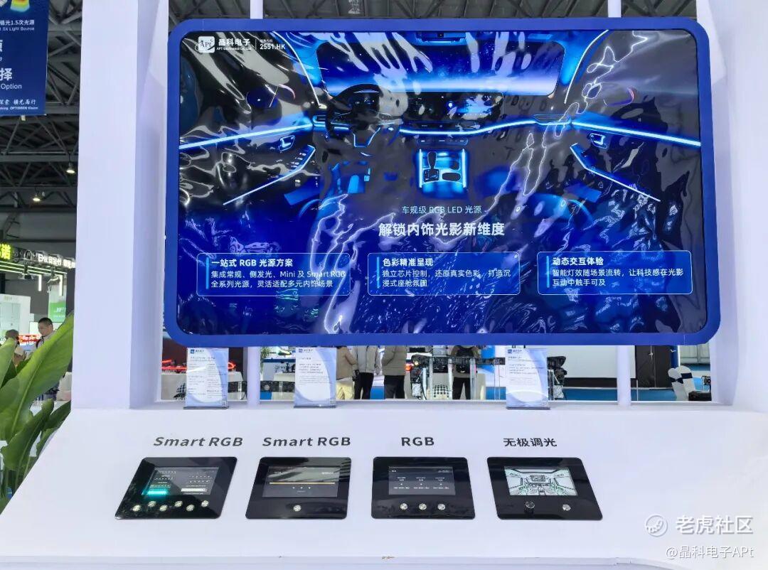 2026年3月25日-27日,广东晶科电子股份有限公司(简称:晶科电子,股票代码:2551.HK)携多款汽车智能照明、交互及显示领域的核心视觉产品,参展第二十一届汽车灯具产业发展技术论坛暨上海国际汽车灯具展览会(ALE),集中展示了智能交互灯、车载背光、氛围内饰、基于 Micro/Mini LED 像素化光源的 ADB 智能投影前照灯系统及车规级 LED 器件和模组等系列产品,全面介绍了晶科电子在汽车智能视觉领域的技术积累与系统解决方案能力,吸引了众多主机厂、Tier 1供应商及行业专家莅临交流,深入探讨。