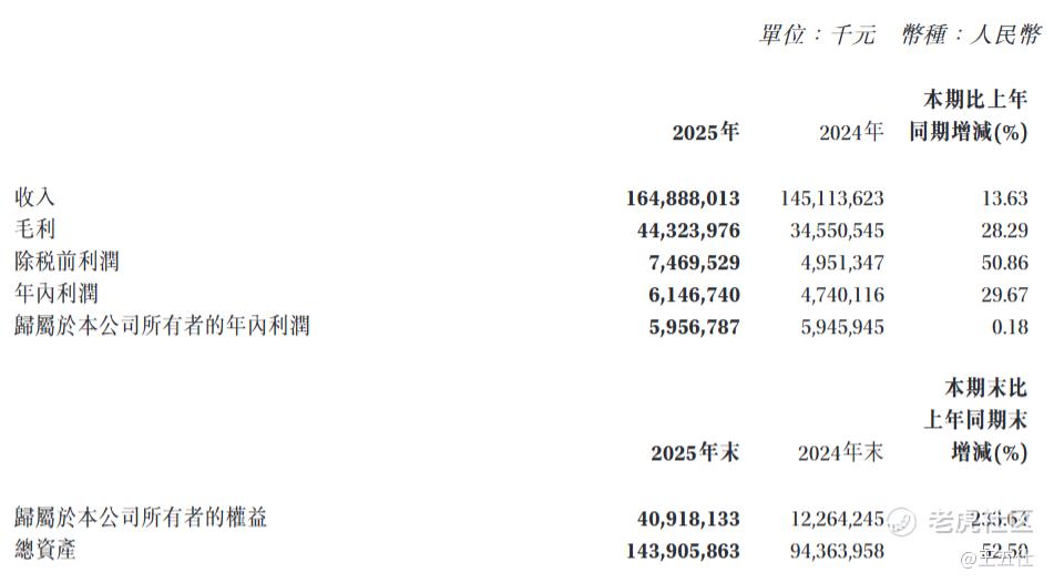 业绩数据方面,2025年赛力斯实现营收1648.88亿元,同比增长13.63%;除税前利润74.70亿元,同比大幅增长50.86%;归母净利润59.57亿元,同比微增0.18%;基本每股收益3.68元。